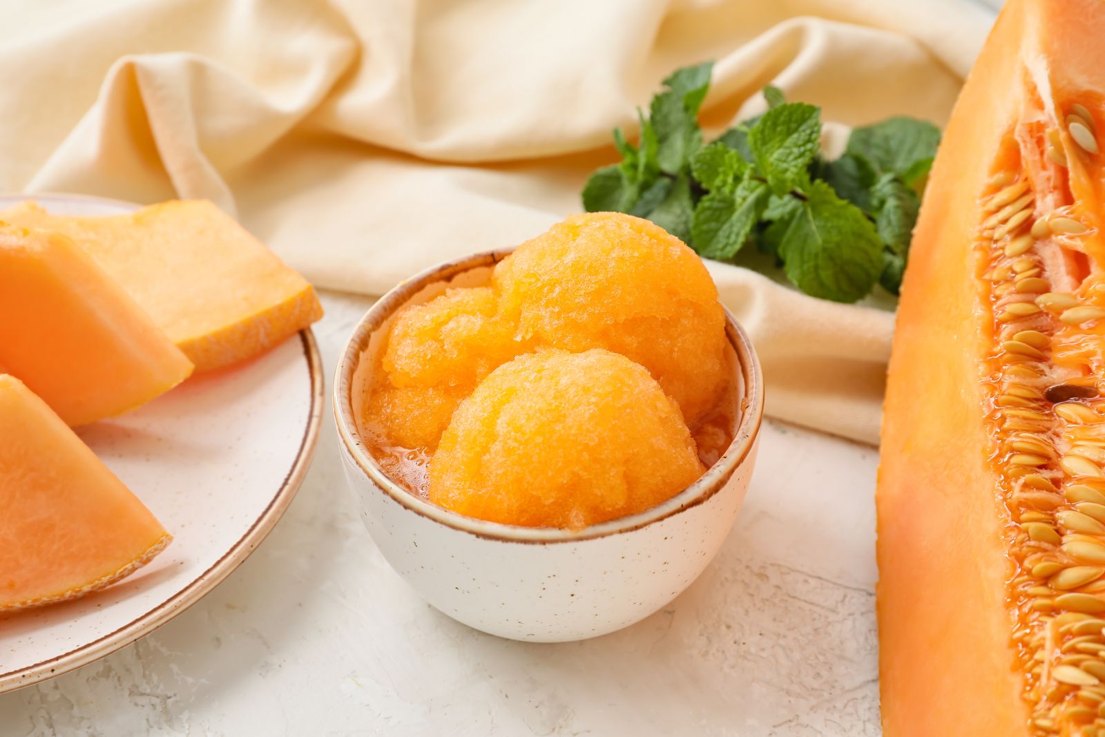 L’indispensable en été ? Le sorbet, et voici sa recette au melon pour une barquette 500 grammes : il vous faudra 2 gros melons, du sucre, du sirop de glucose (ou du miel) et de l’eau.