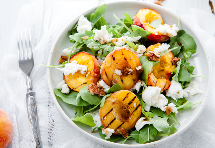 Un incontournable toujours autant apprécié ! Le combo burrata pêche ne déçoit jamais dans une salade fraîcheur, idéale pour l’été.