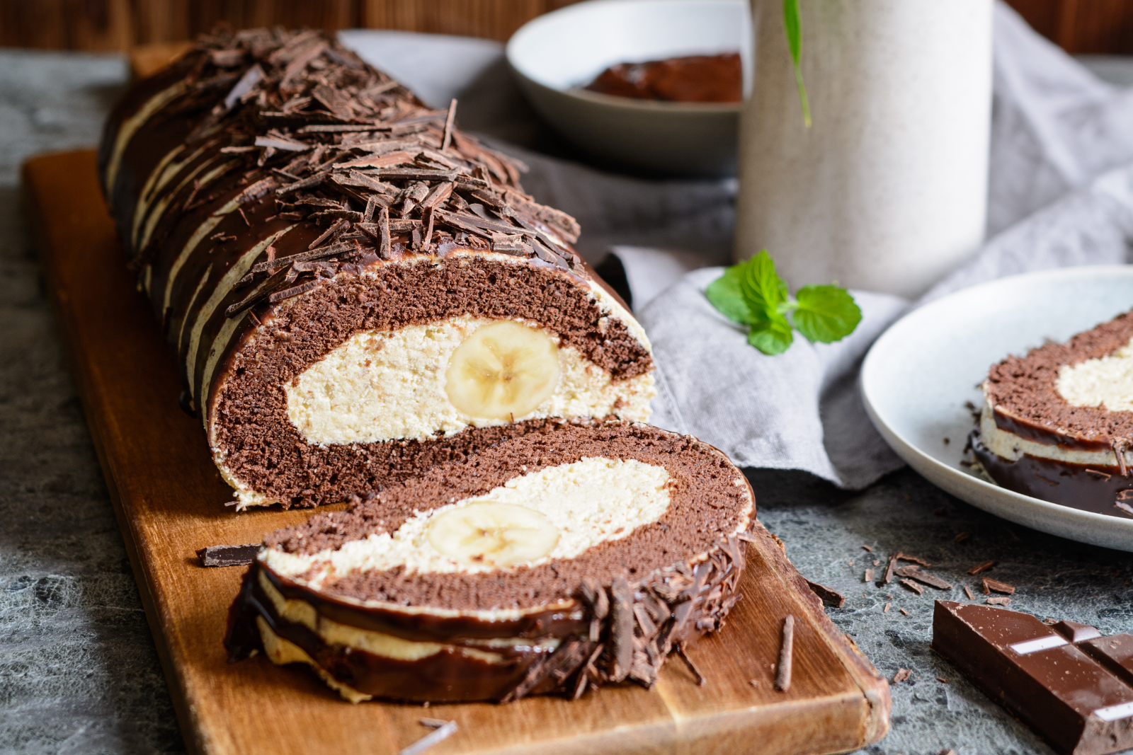 Pour vous régaler ce-mois-ci, Bob a préparé 2 recettes gourmandes à base de chocolat : des truffes moelleuses à la banane et une délicieuse bûche de Noël. Tout de suite, découvrez sa bûche au chocolat et à la crème de banane.