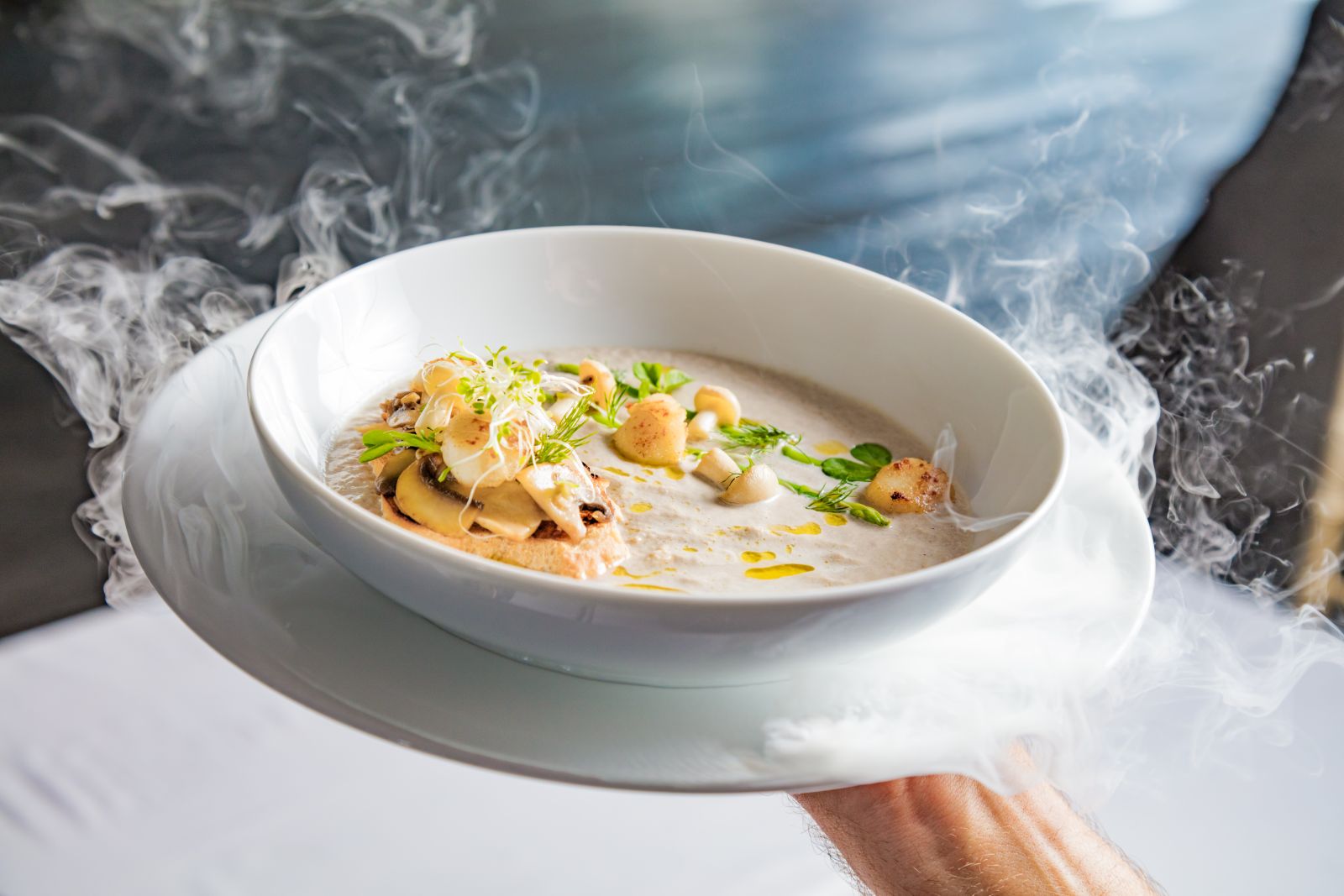 - Versez la crème d’endives dans des bols puis déposez les St Jacques et les champignons par-dessus.