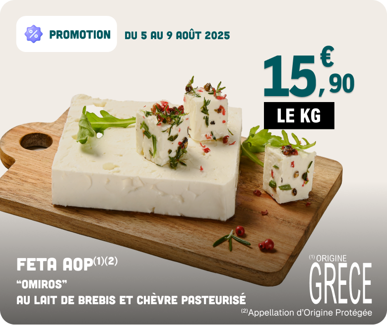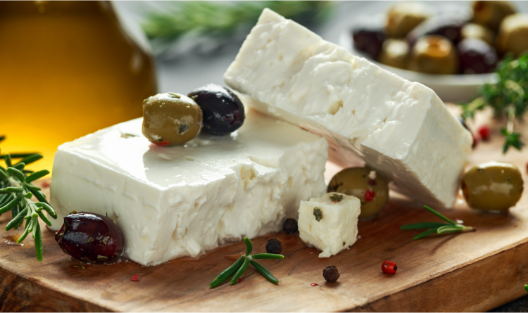 La feta est un fromage blanc frais, salé et au goût prononcé, originaire de Grèce.